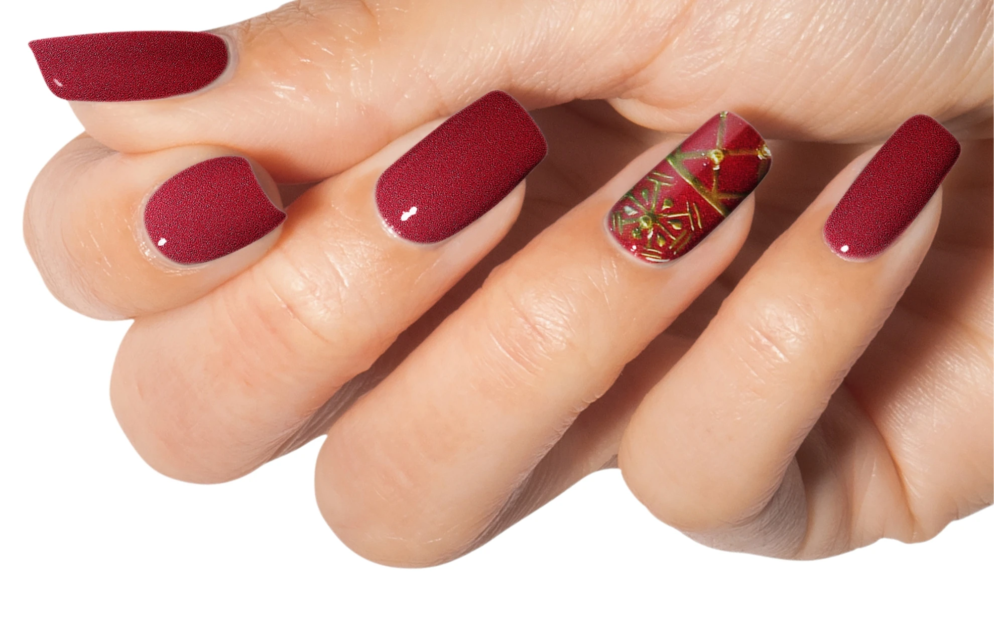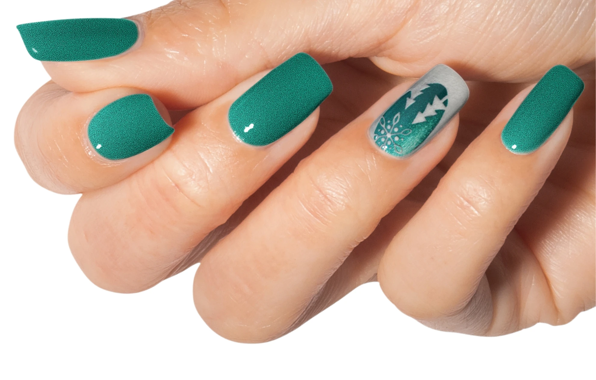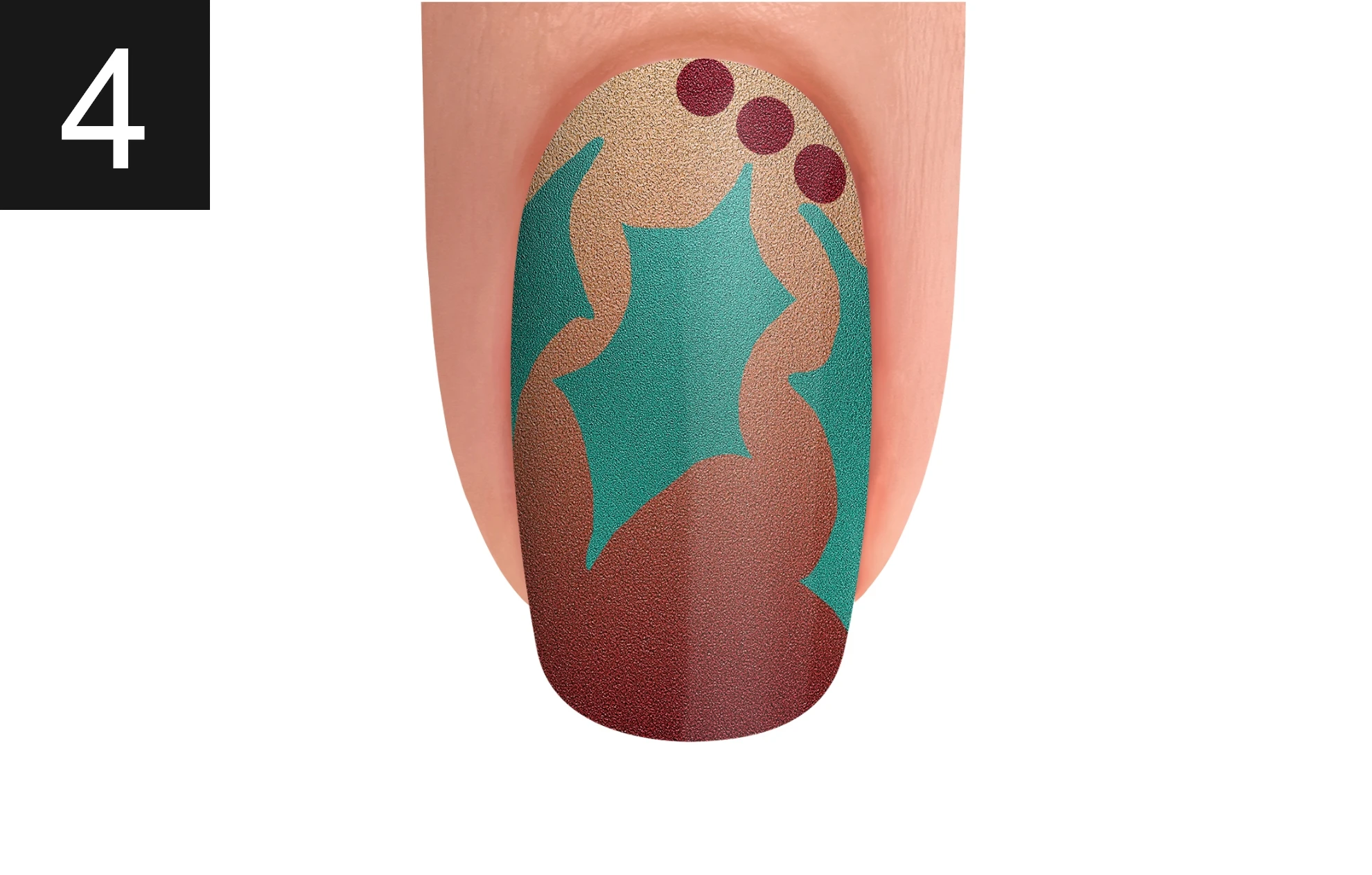 Create the second reindeer with Arctic Freeze and sprinkle XPRESS DIP N BRUSH ARCTIC FREEZE. Cure for 30 seconds and dust off any excess powder. Finish your look by massaging NOURISH Cuticle Oil into the skin surrounding the nail plate.