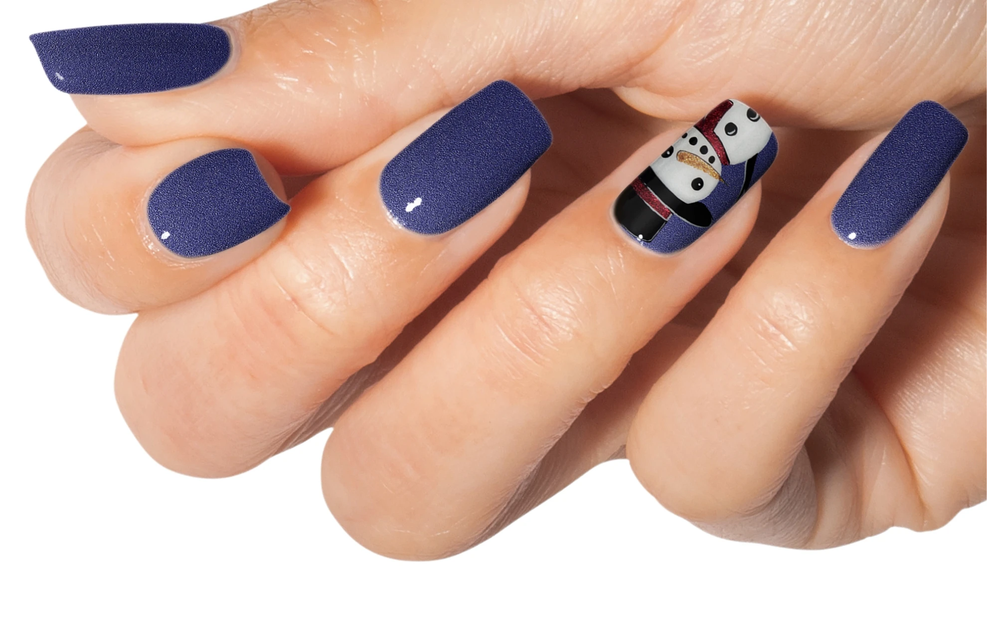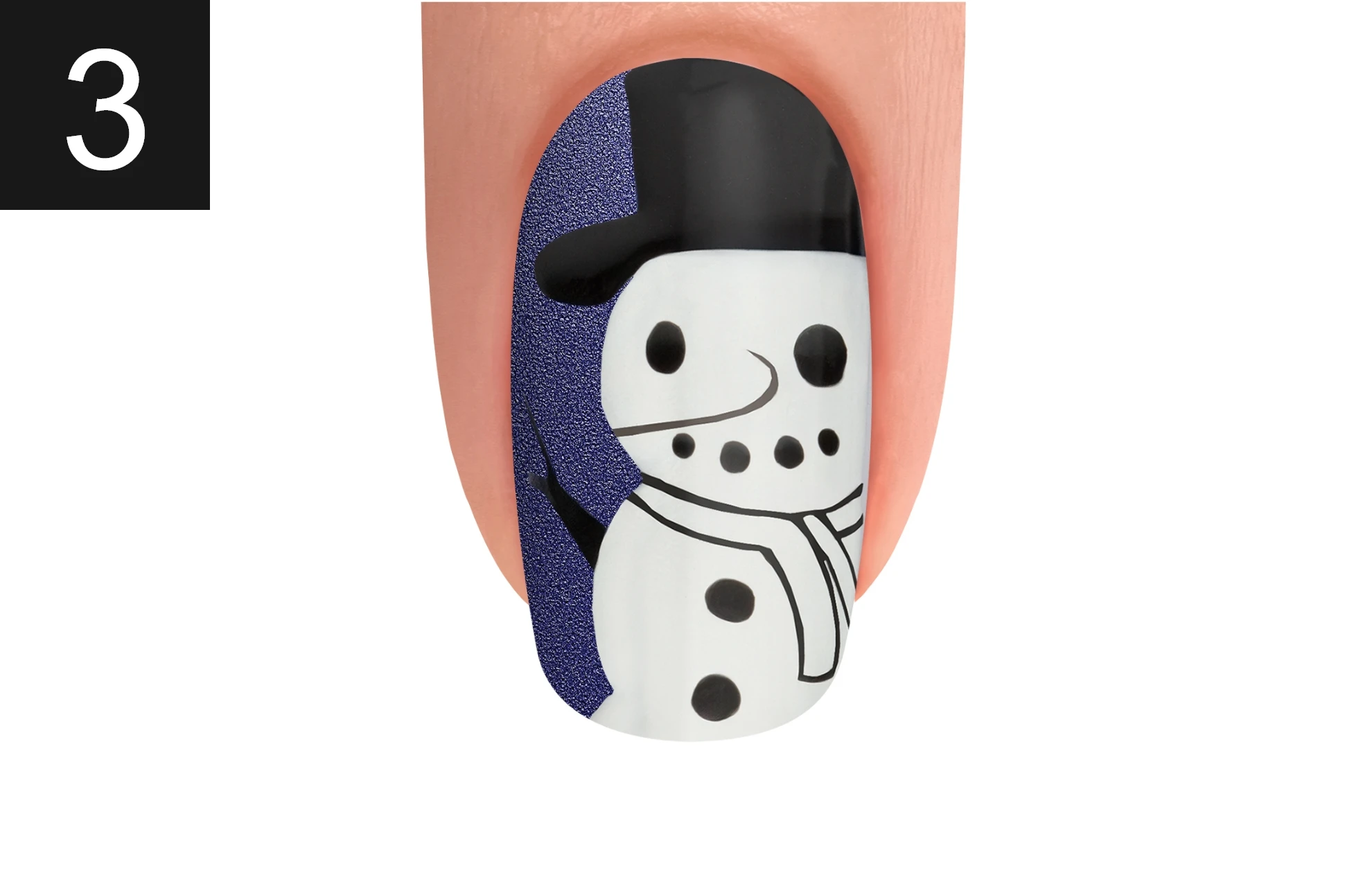 Apply SUGAR COATED DREAMS on the hat and scarf. Use CUDDLE ME TIGHT for the nose and add highlights using Arctic Freeze then finish with NEED FOR SPEED Top Coat.