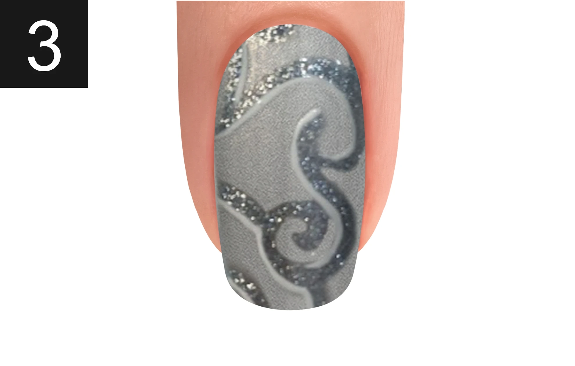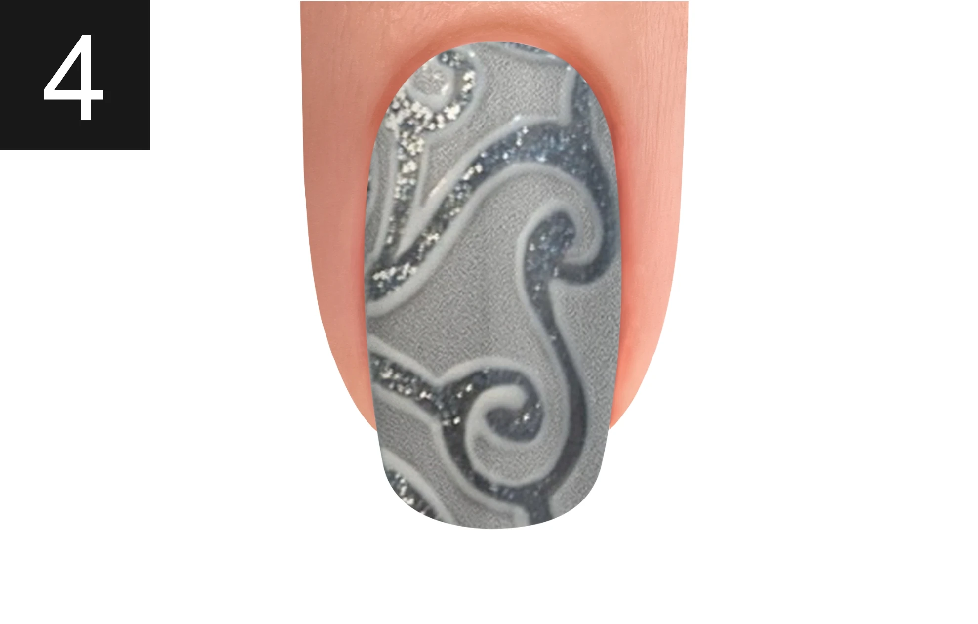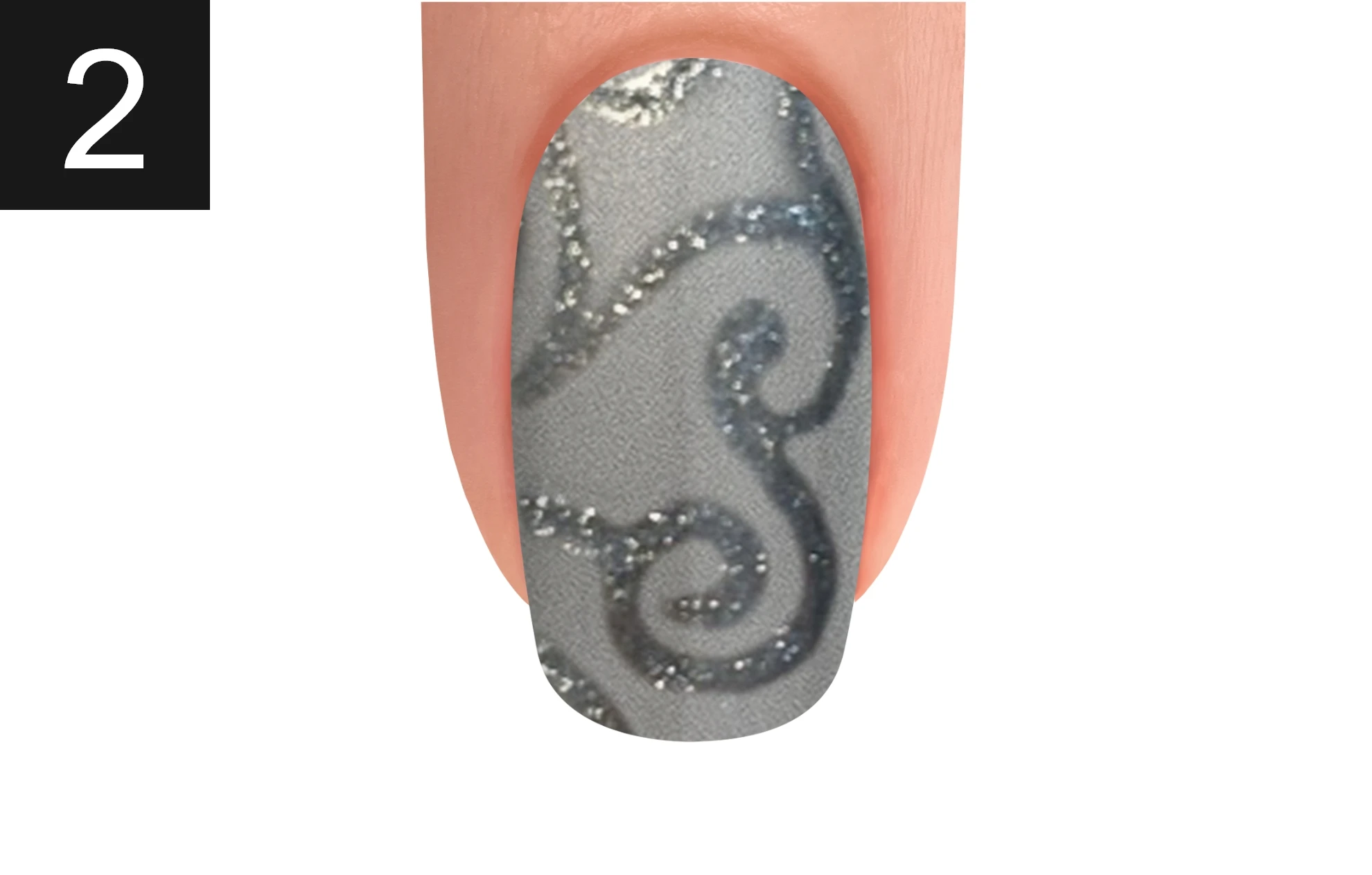 Create swirls using ART FORM GEL SILVER SHIMMER and cure for 30 seconds.