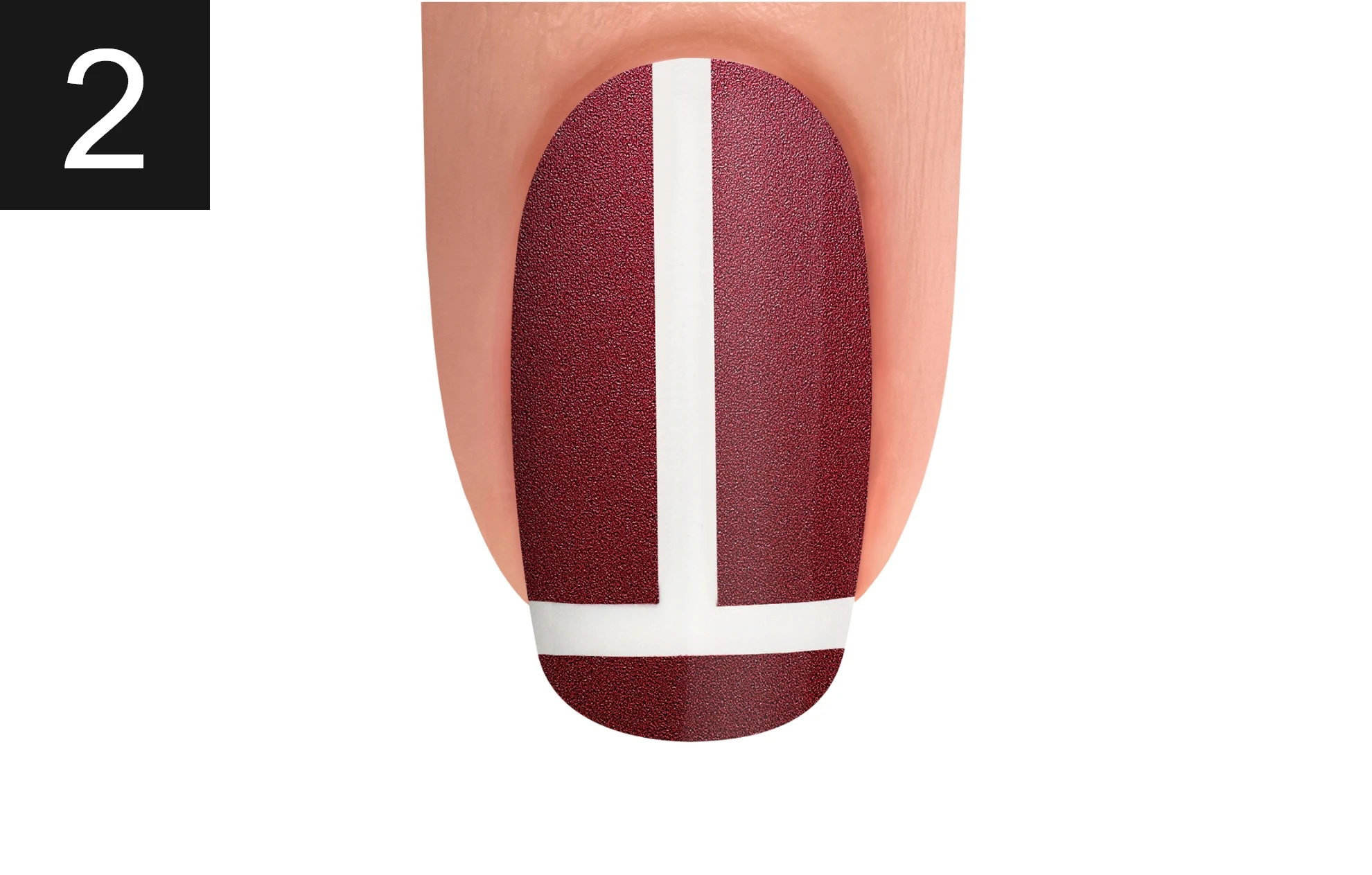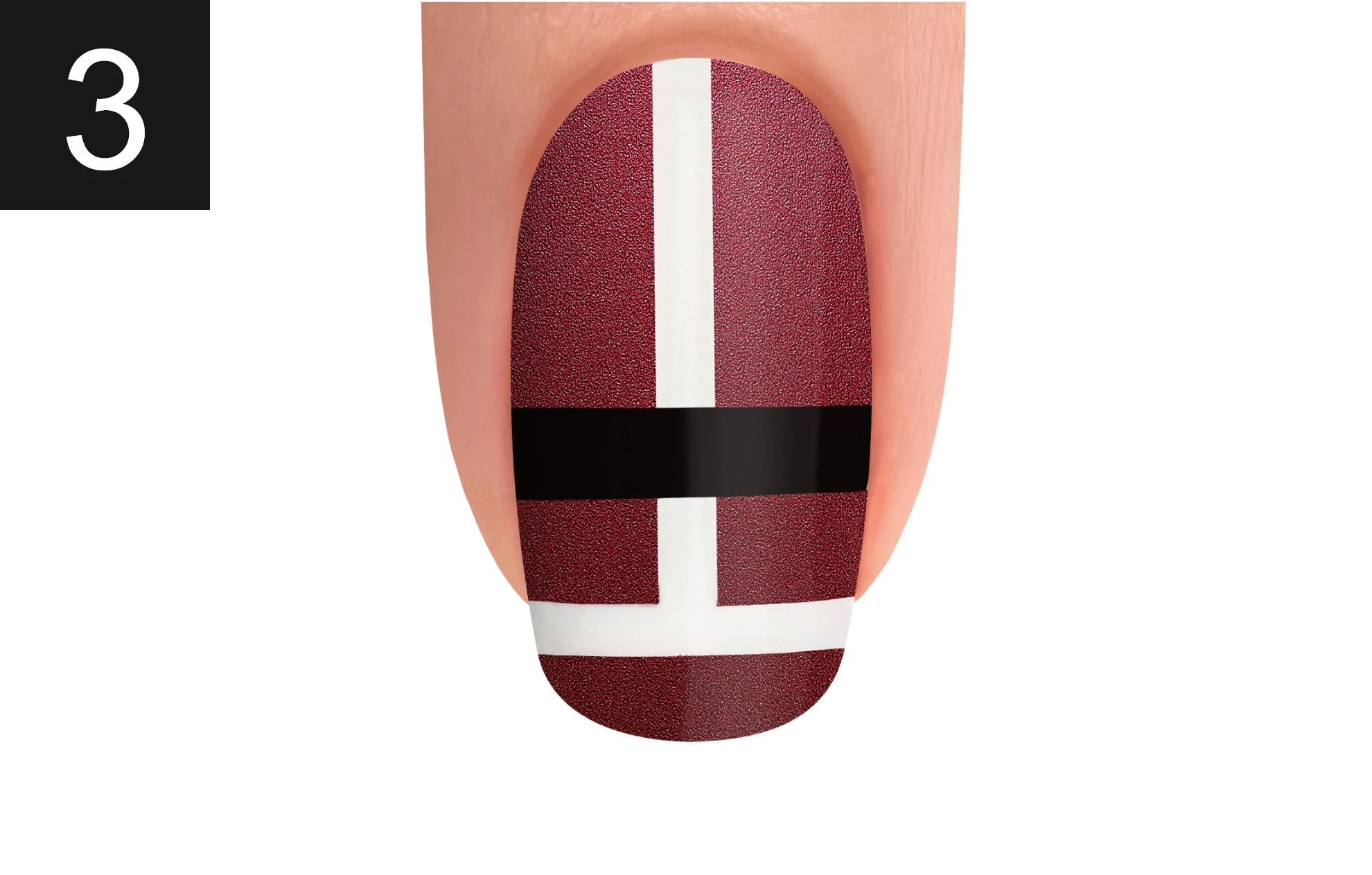 Allow lacquer to dry. Apply striping tape onto the nail.