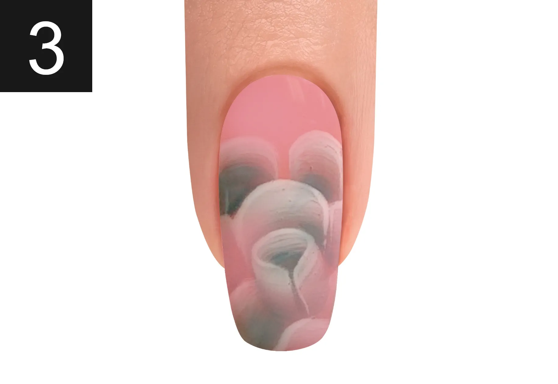 With a square brush, load one side of the brush with ART FORM GEL ESSENTIAL WHITE and BLOOM SERVICE. Apply outer petals and cure for 30 seconds.