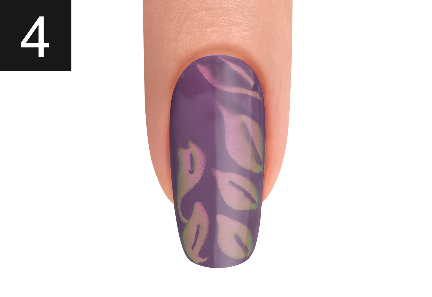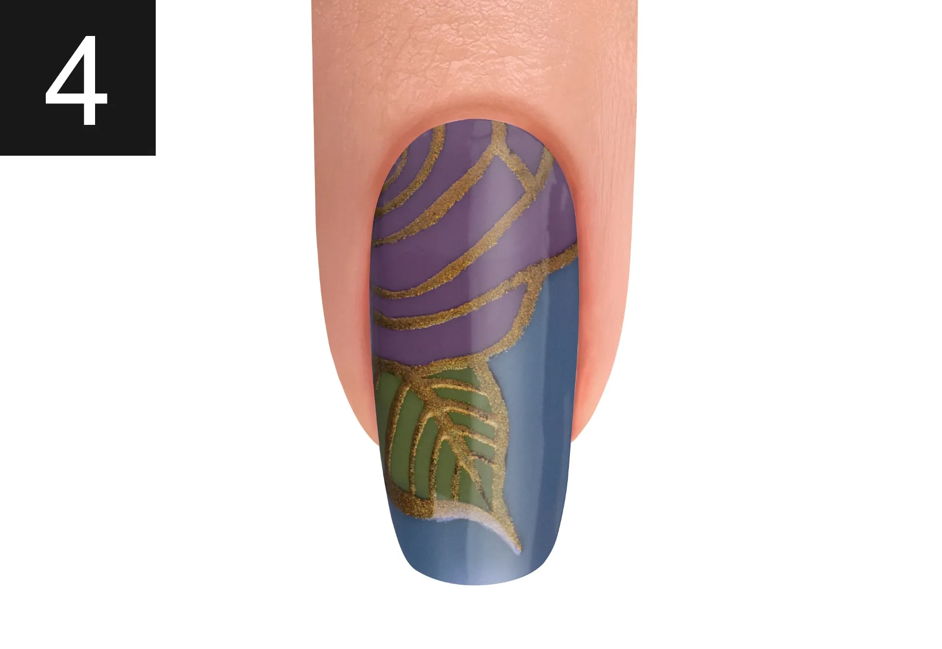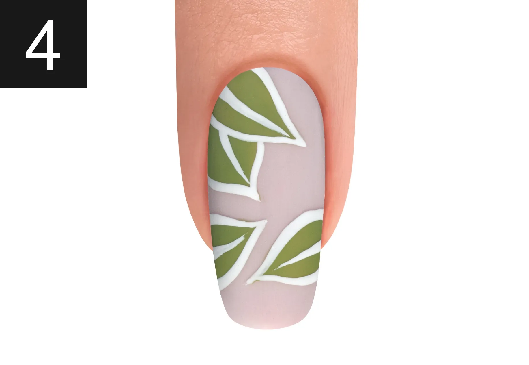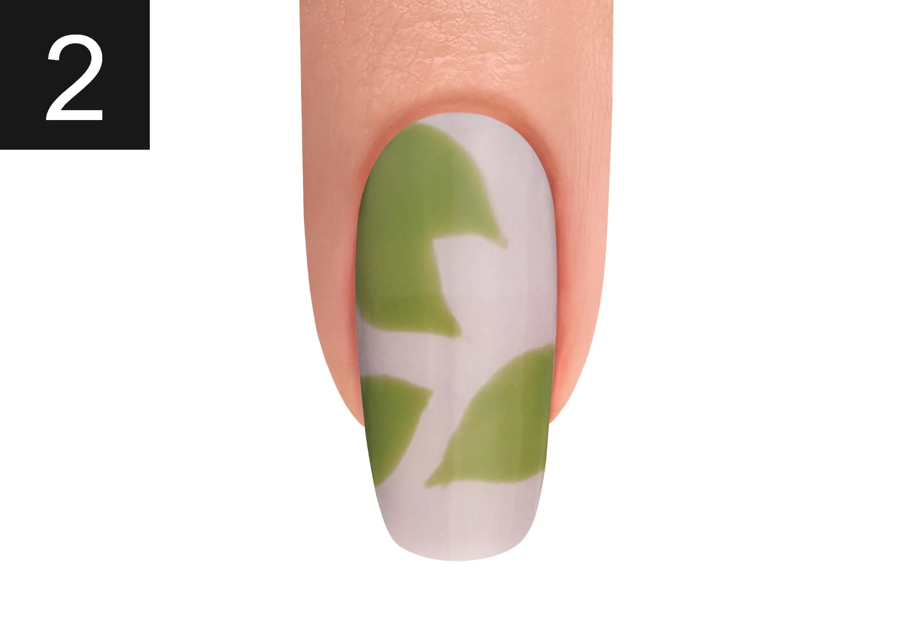 Create leaf designs using Gelish® NO CLEANSE TOP COAT. Cure for 30 seconds.