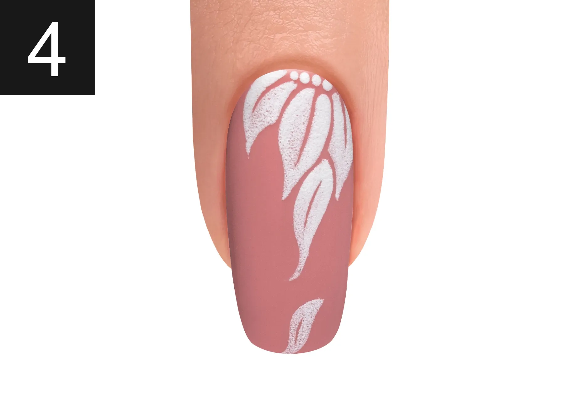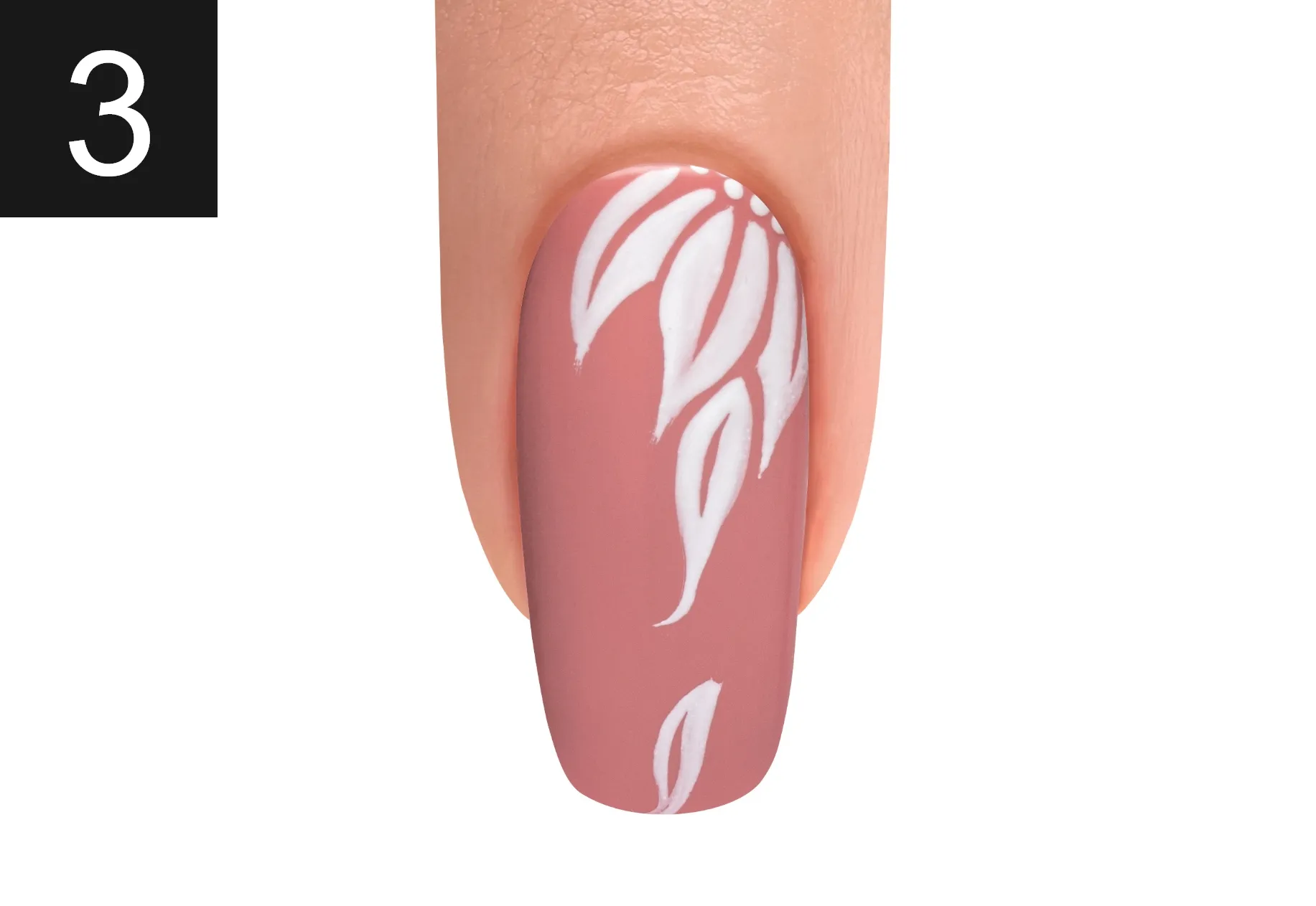 Continue with Gelish® ART FORM ESSENTIAL WHITE. Cure for 30 seconds. Finish your look by massaging Gelish® NOURISH Cuticle Oil.