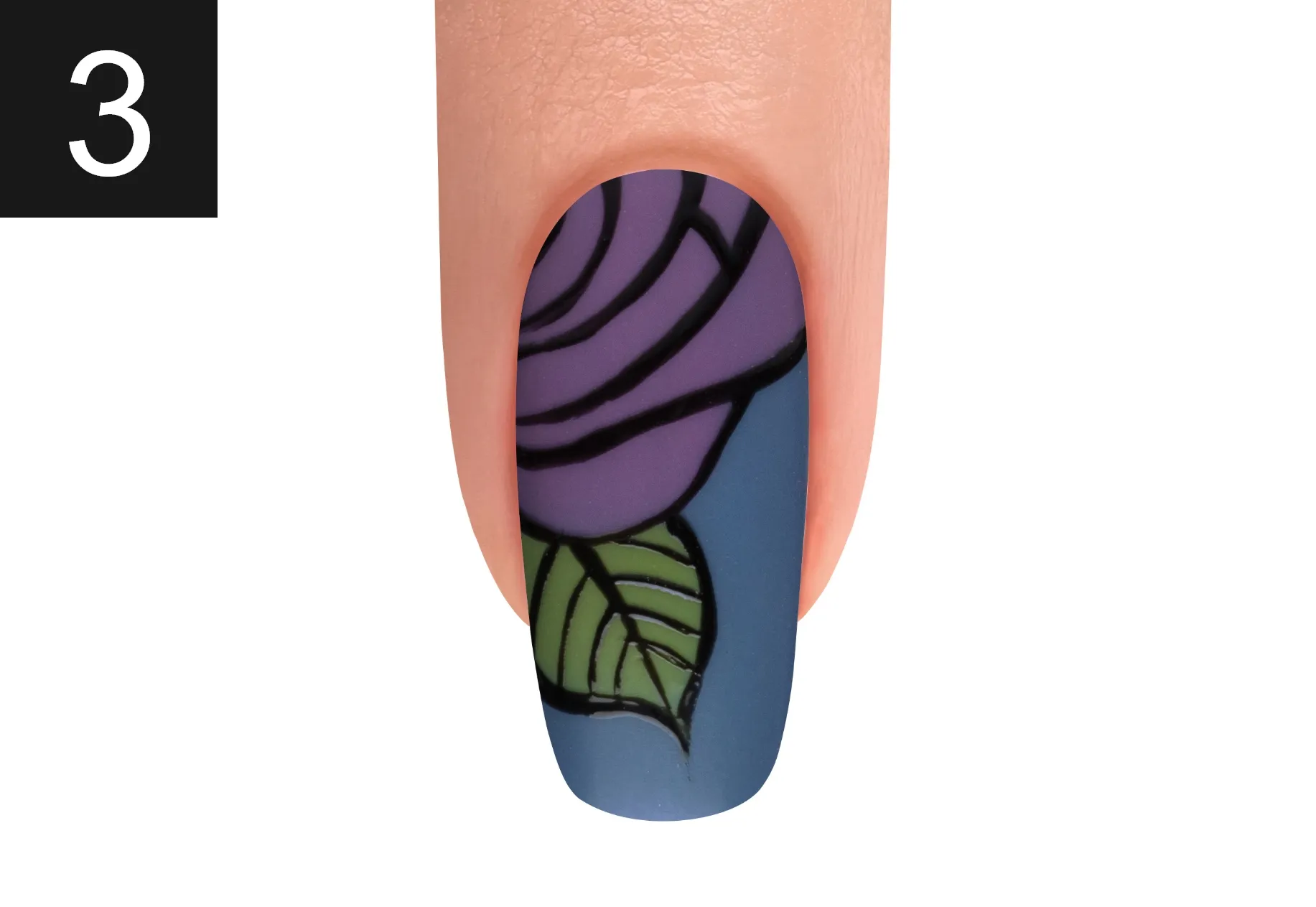 Apply Gelish® ART FORM ESSENTIAL BLACK and cure for 5 seconds.