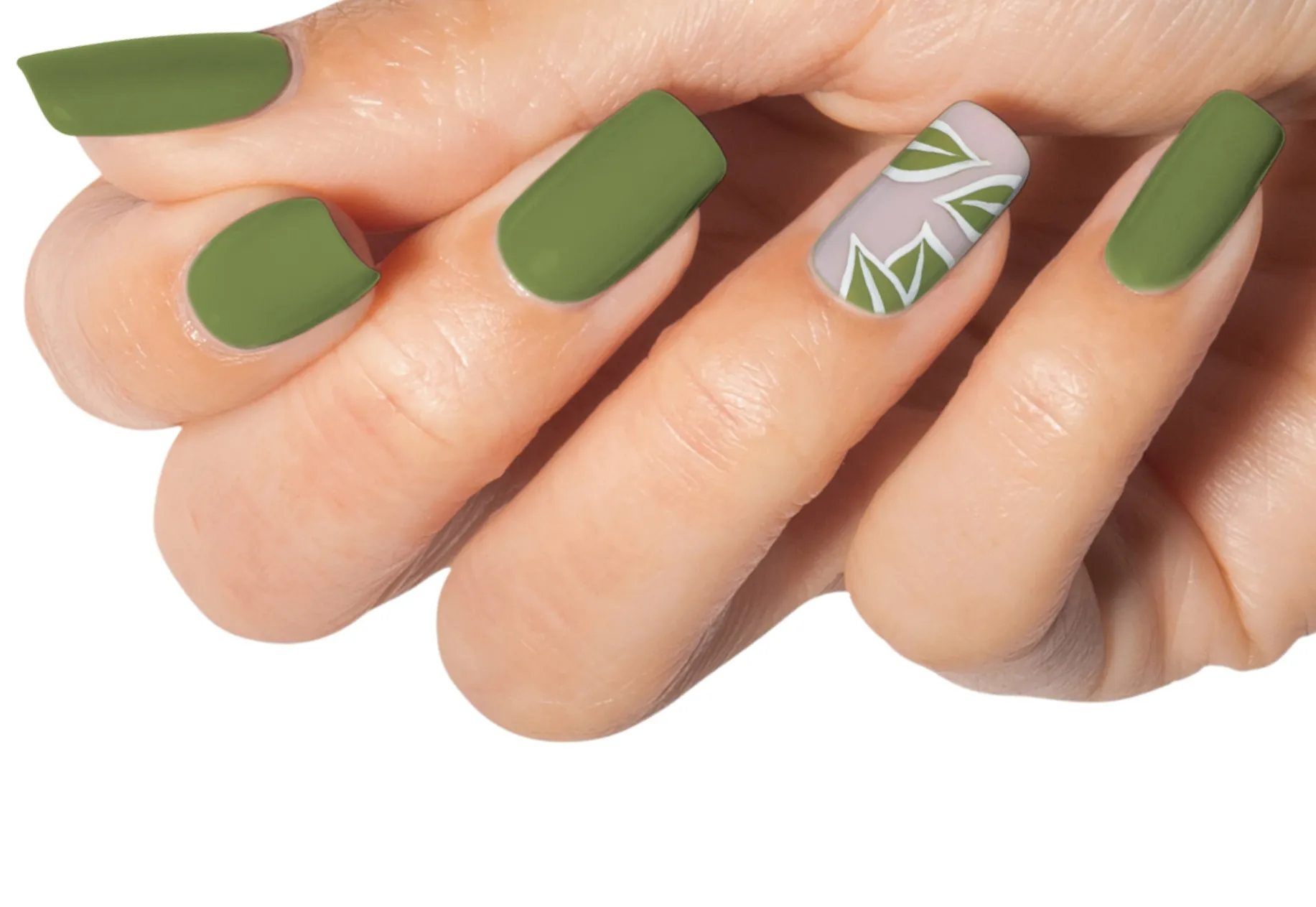 Apply Gelish® LEAF IT ALL BEHIND. Cure for 30 seconds.