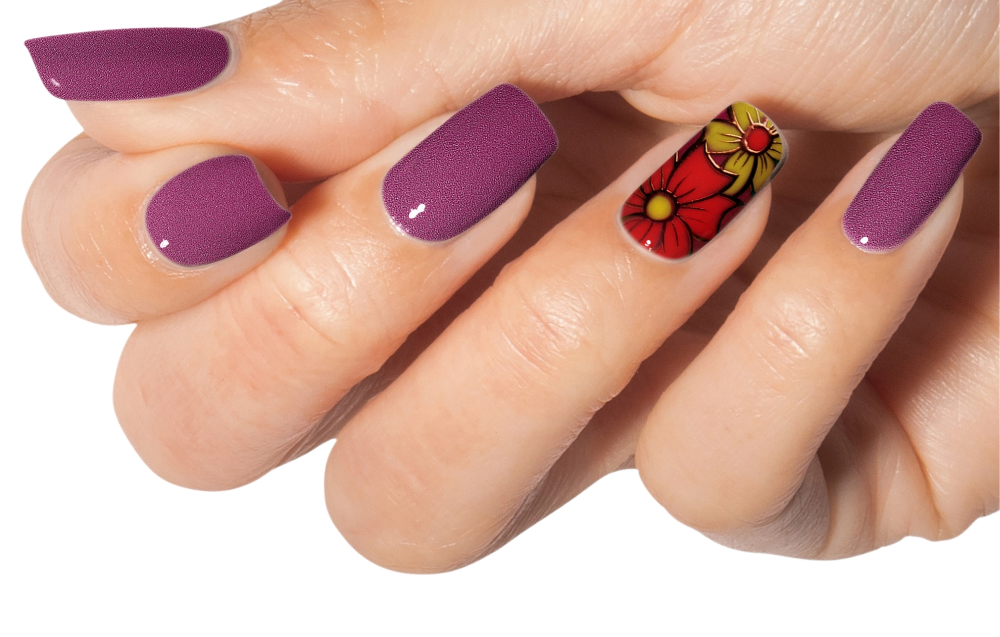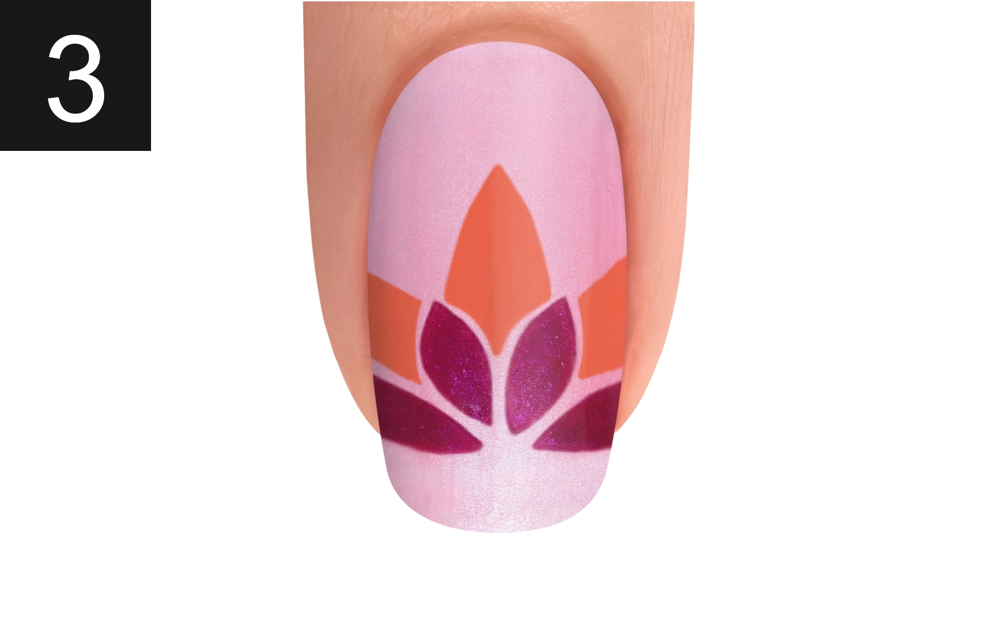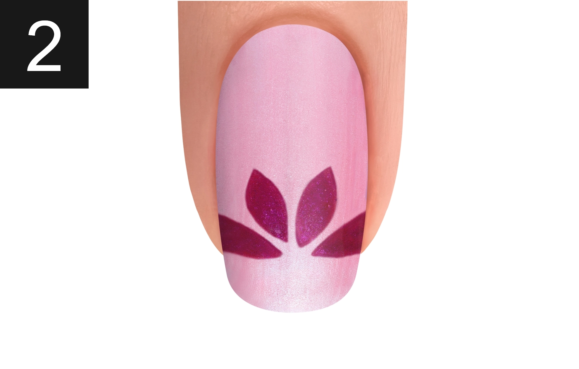 Create flowers with PERK UP BUTTERCUP and I’M ALL CHEERS. Cure for 30 seconds. Apply MATTE TOP IT OFF and cure for 30 seconds. With NAIL SURFACE CLEANSE and WIPE IT OFF lint-free wipes, cleanse the inhibition layer of the nail.