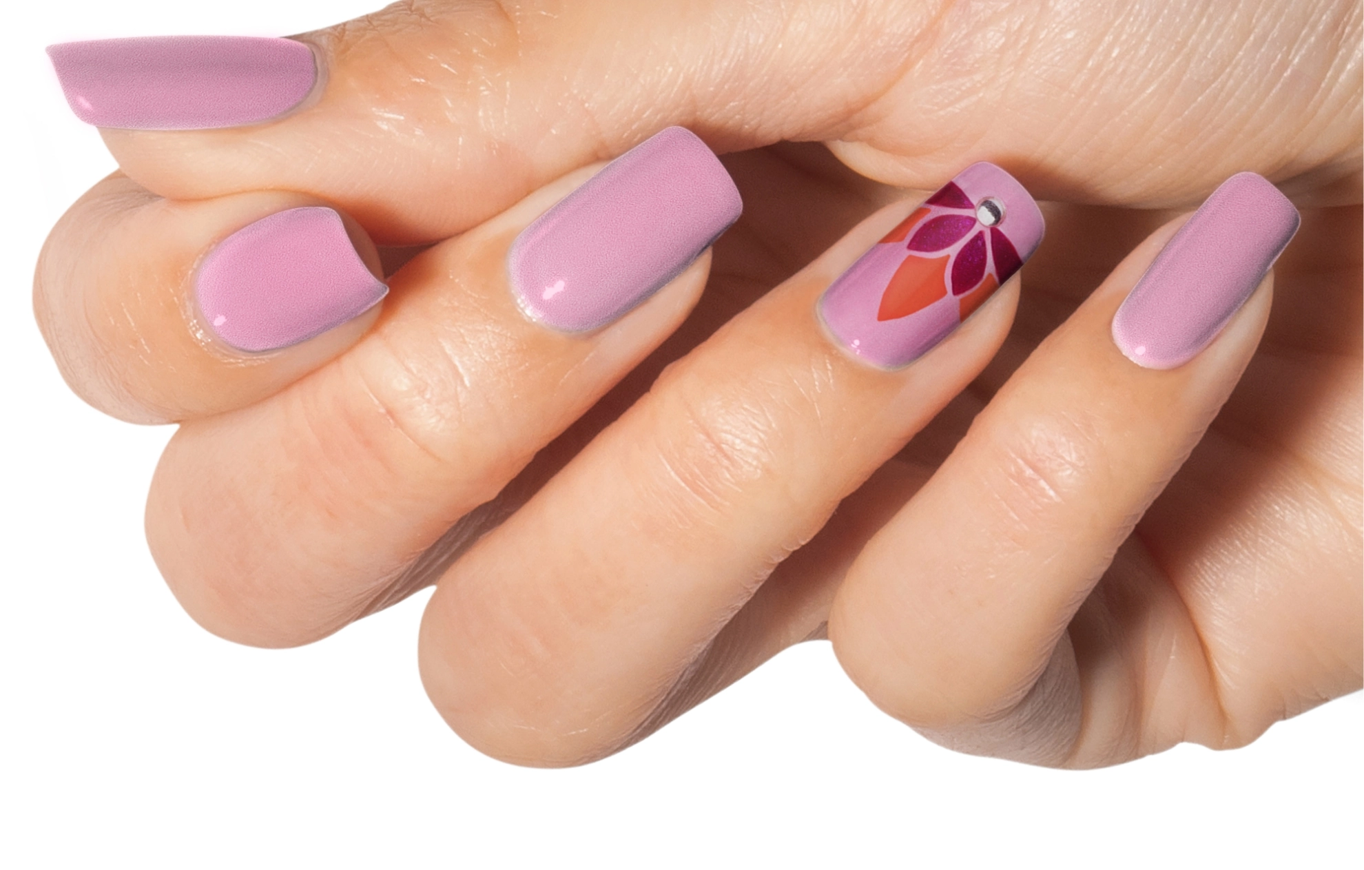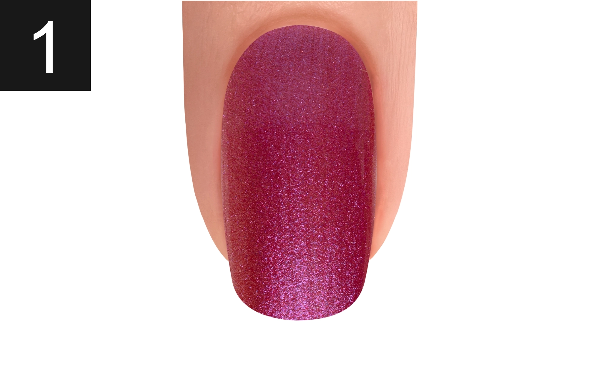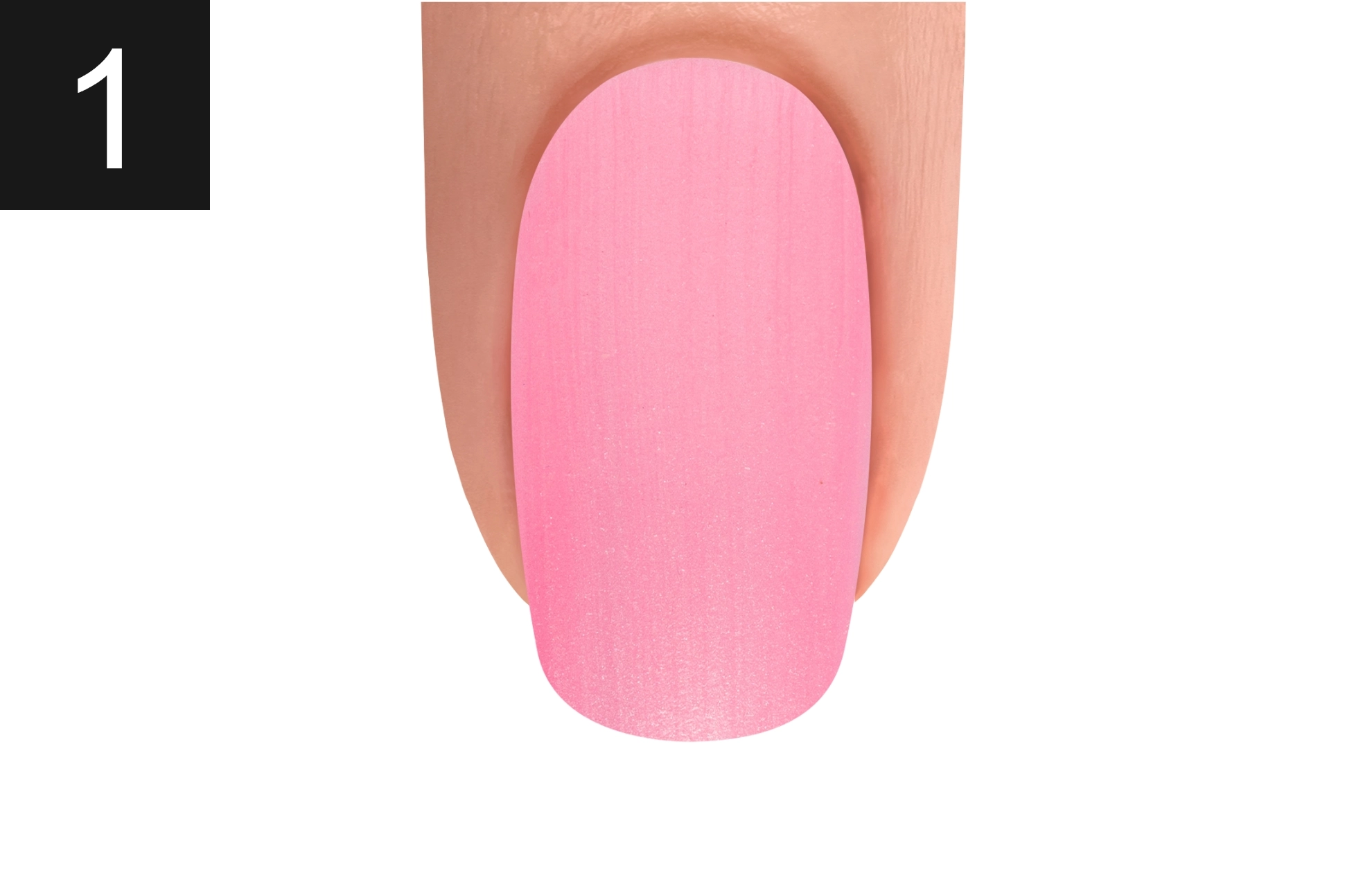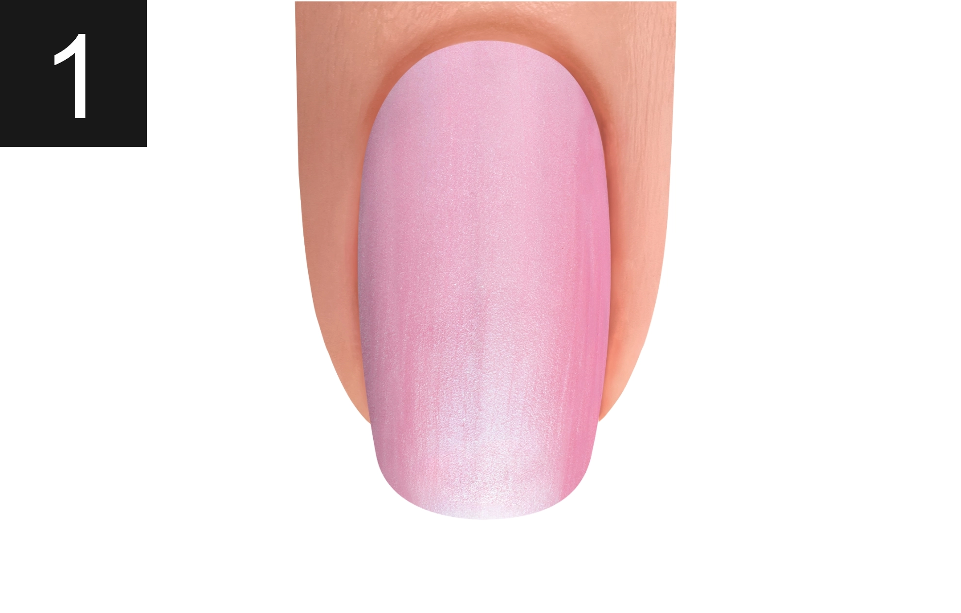 Apply CHROME STIX PINK OPAL and GELISH NO CLEANSE TOP COAT. Cure for 60 seconds.