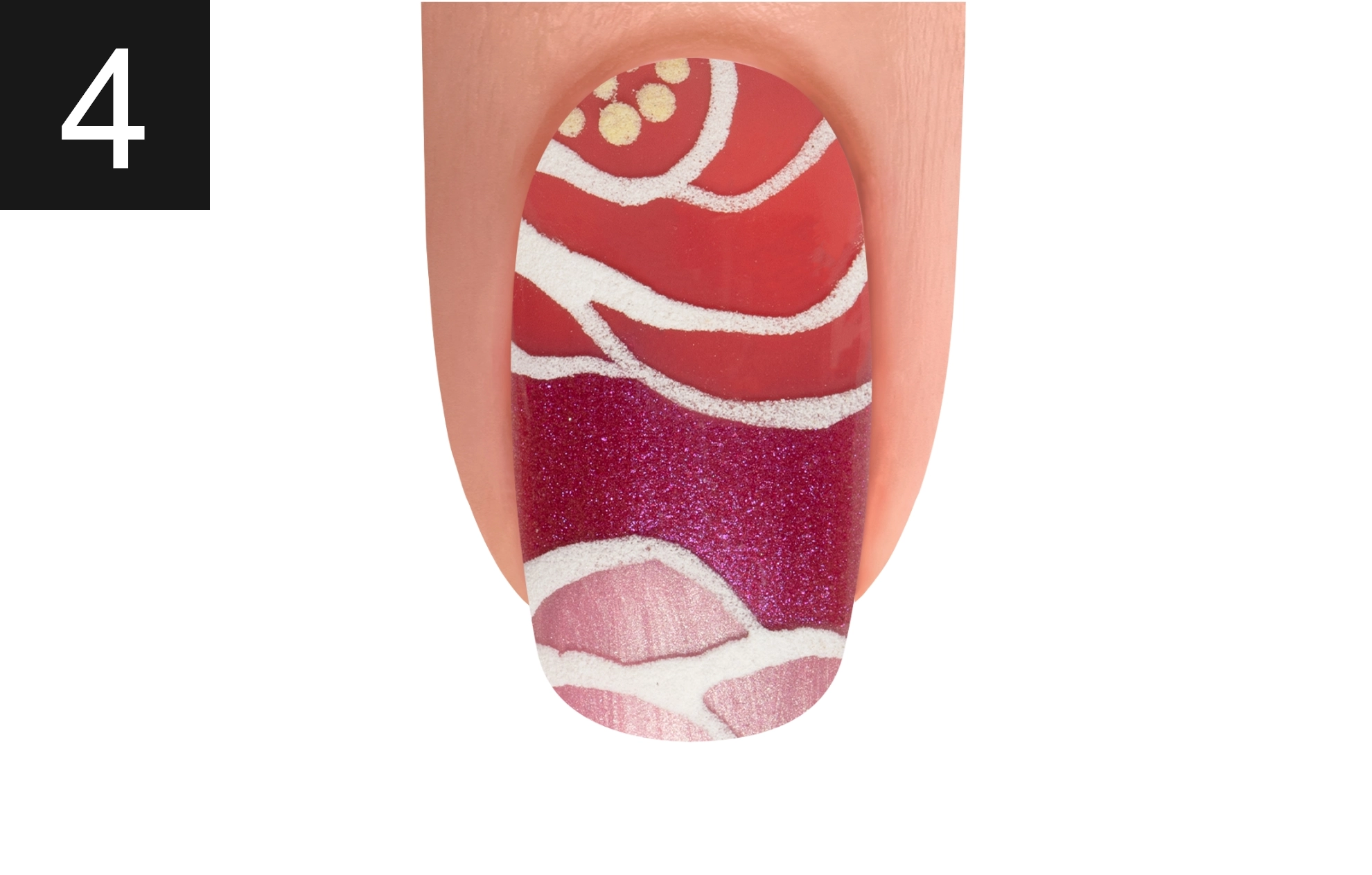 With a dotting tool, apply HUGS AND BLISSES. Finish with NEED FOR SPEED Top Coat.