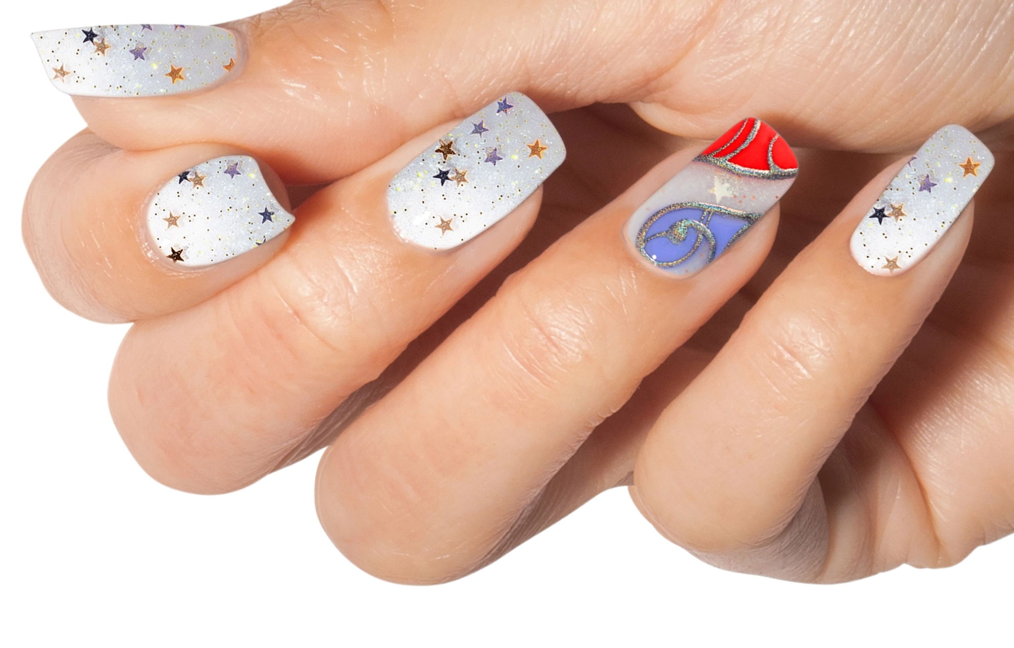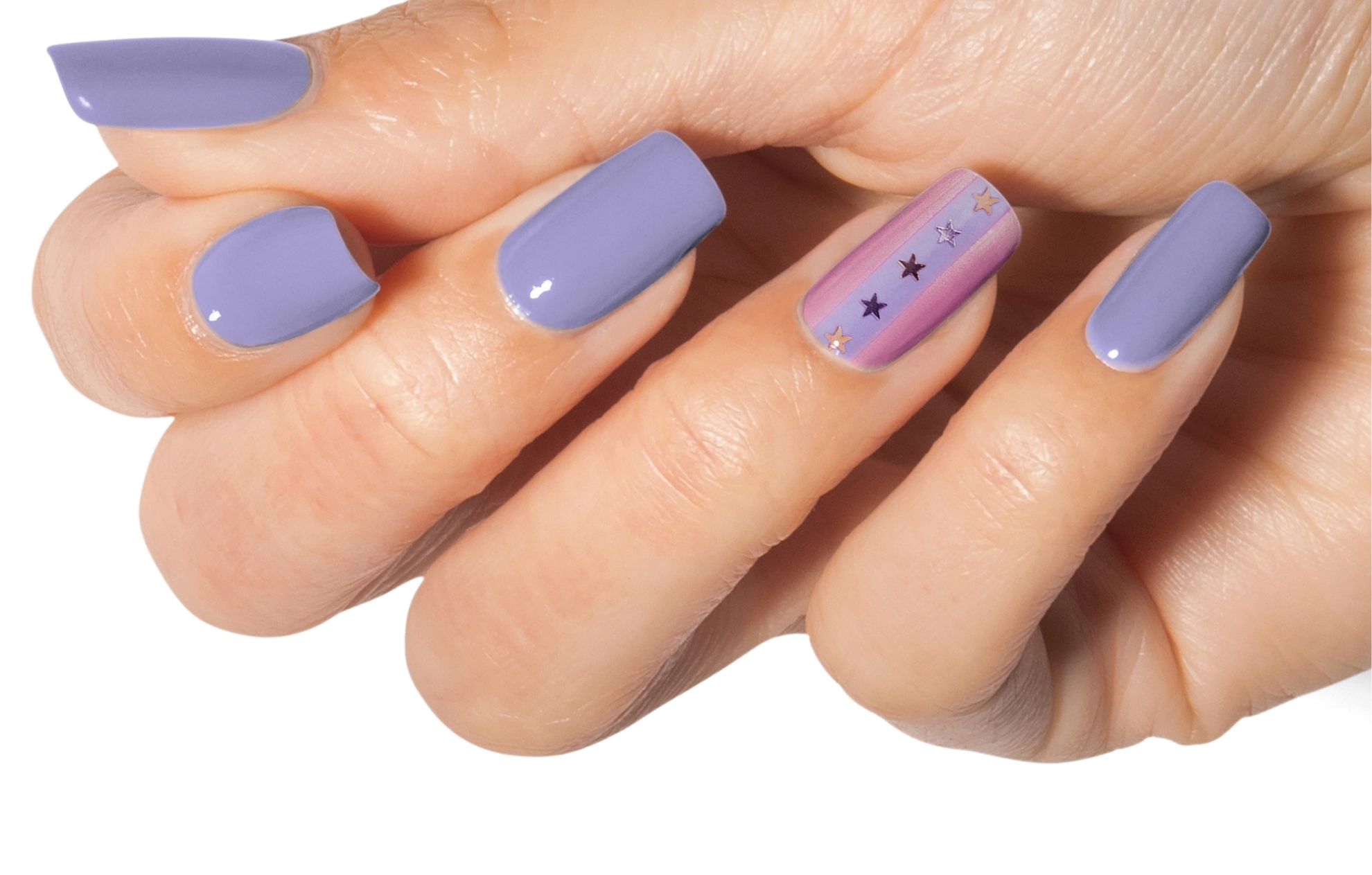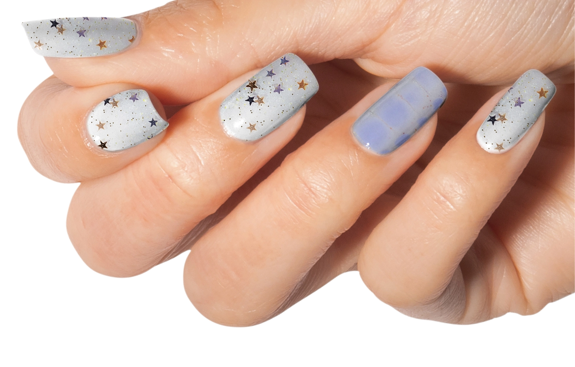 Apply STAR WALKING, CAN’T BURST MY BUBBLE, PERK UP BUTTERCUP, I’M ALL CHEERS and SIPPING ON SERENITY onto the nail.