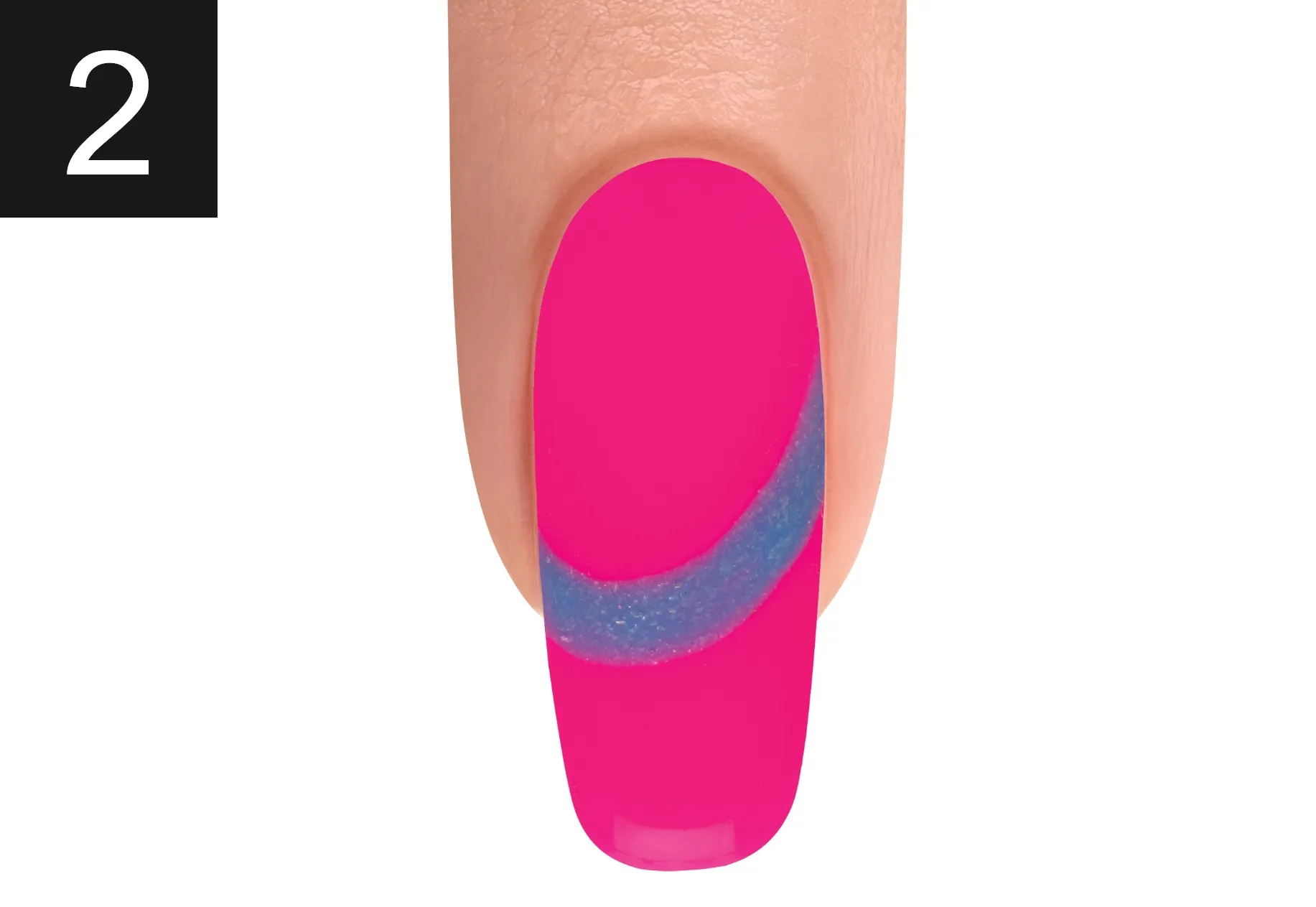 With a Mini Striper Brush, create waves with IT’S MY MOMENT and ORANGE CRUSH BLUSH. Cure for 30 seconds.