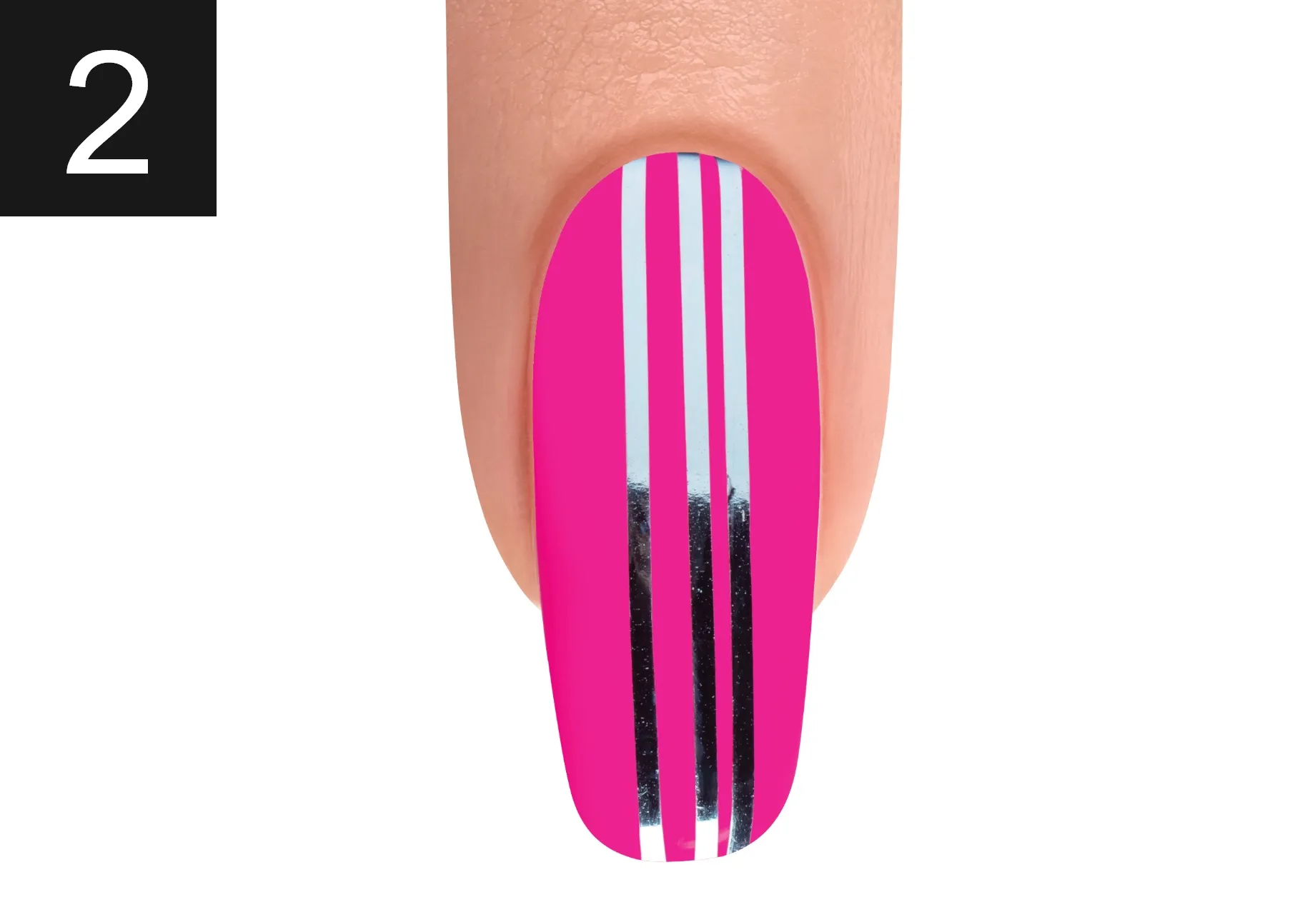 Remove striping tape and cure for 30 seconds. Apply TOP IT OFF to the entire nail making sure to cap the free edge. Cure for 30 seconds.