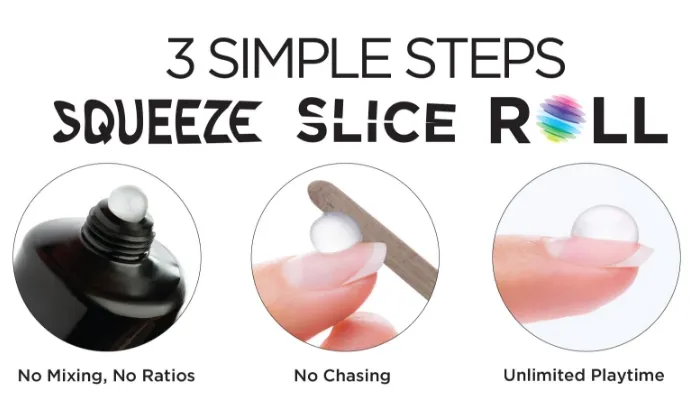 All-in-one formula for the perfect working consistency. No monomer, no mixing, no ratios, odorless!