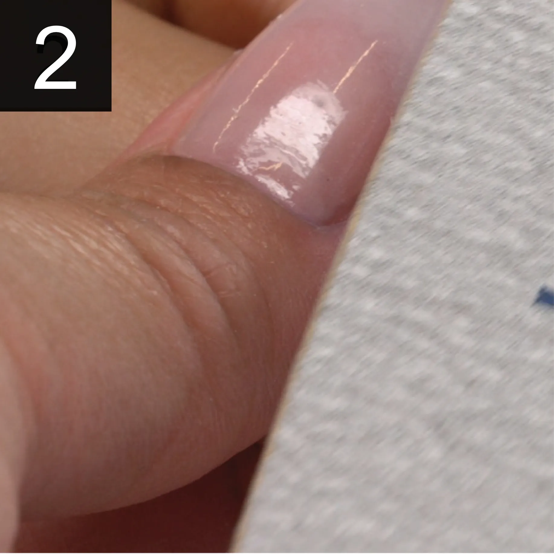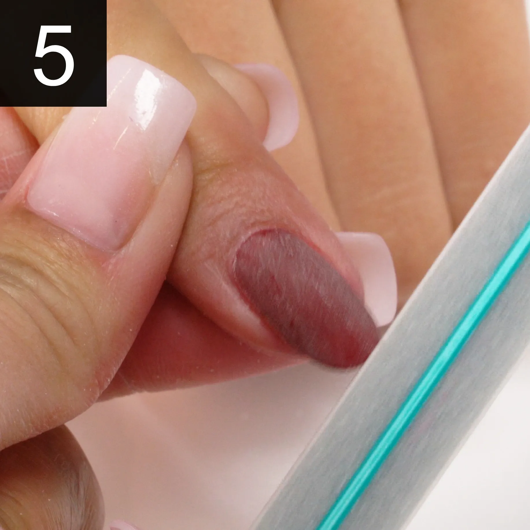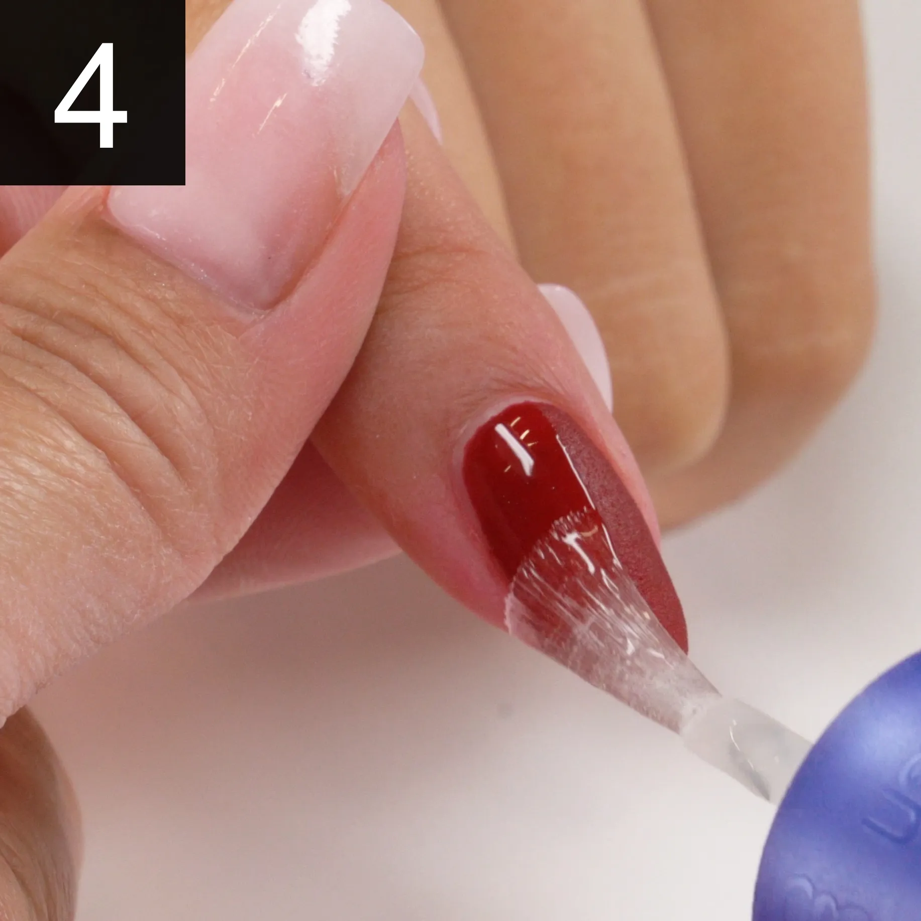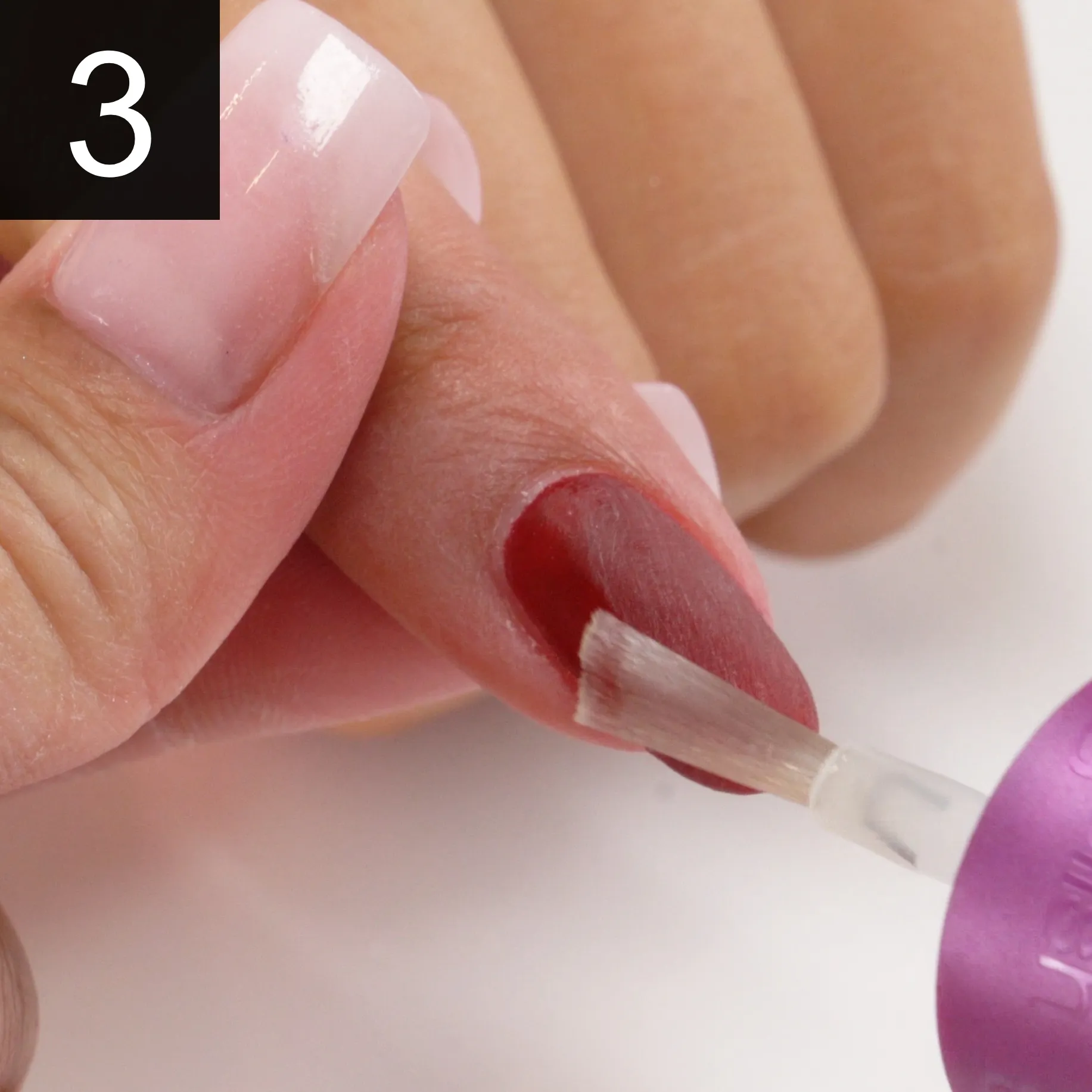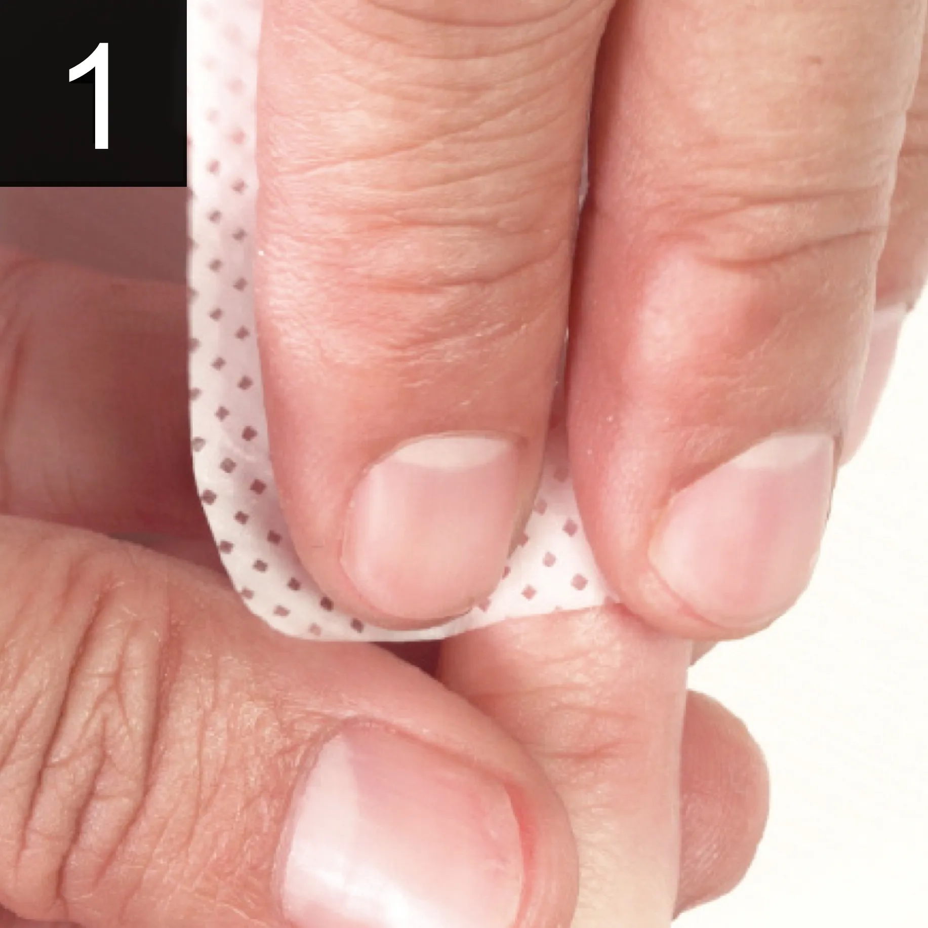With NAIL SURFACE CLEANSE and a WIPE IT OFF lint-free nail wipe, cleanse the nail and remove all dust.