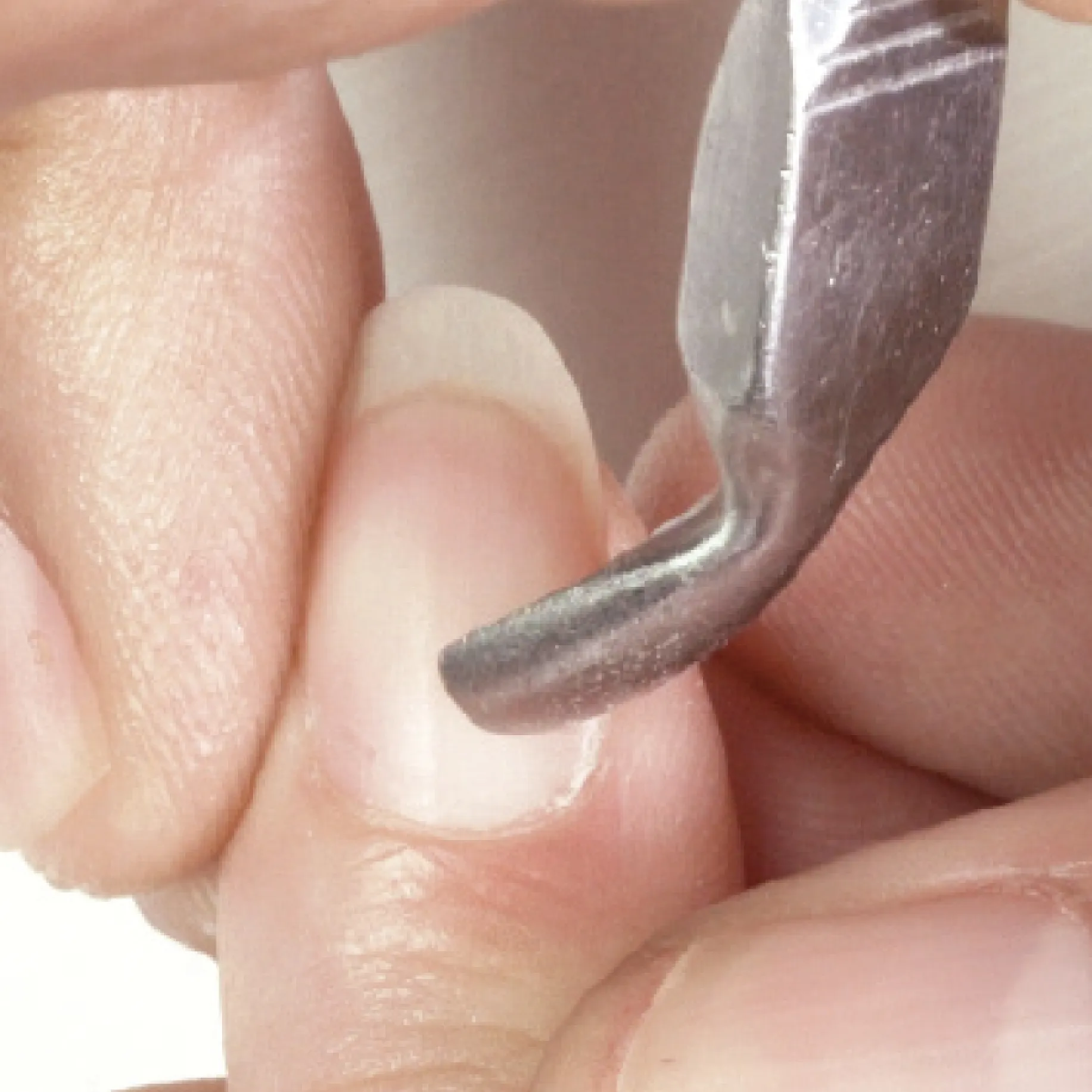 Sanitize clients’ hands and nails. Push back the eponychium and clean the surrounding nail plate.
