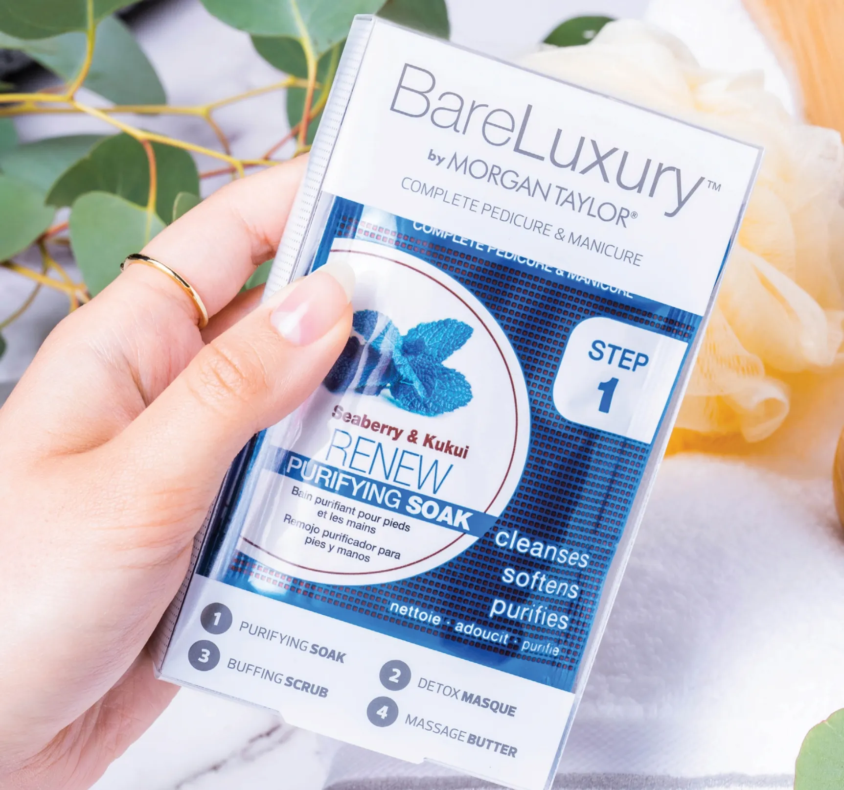 Pampers with luxurious Shea Butter leaving your skin nourished, renewed, and ready for our dazzling Morgan Taylor Nail Lacquer finish! Leaves your feet and hands glowing.
