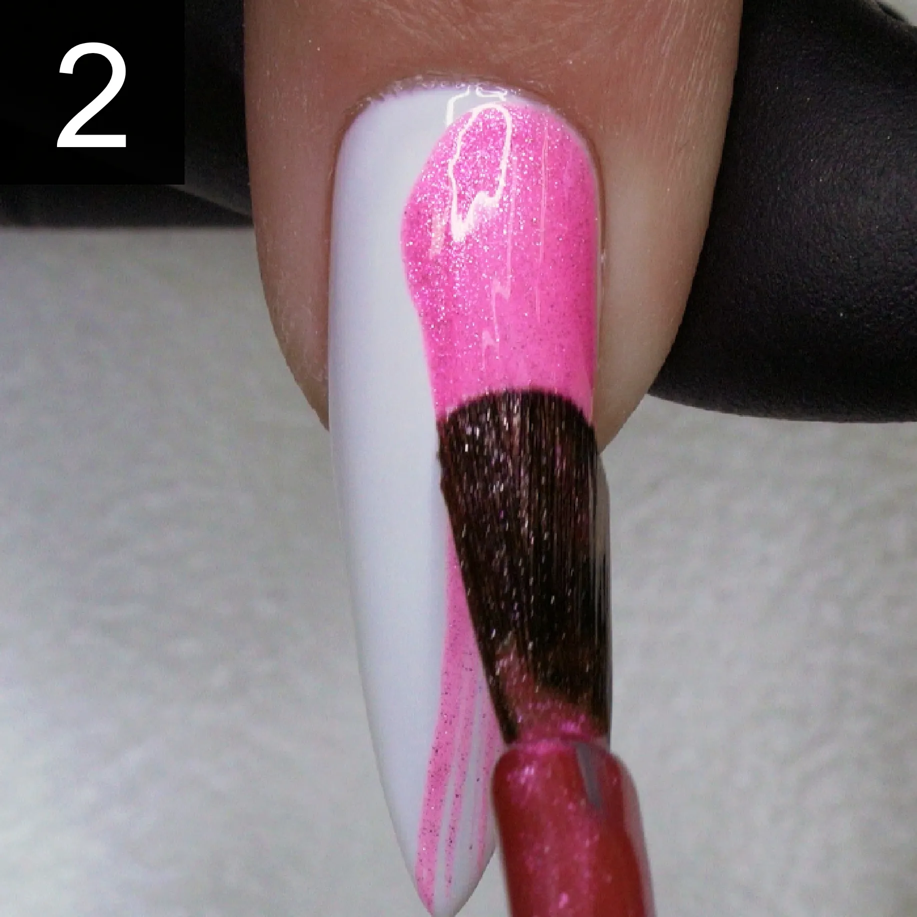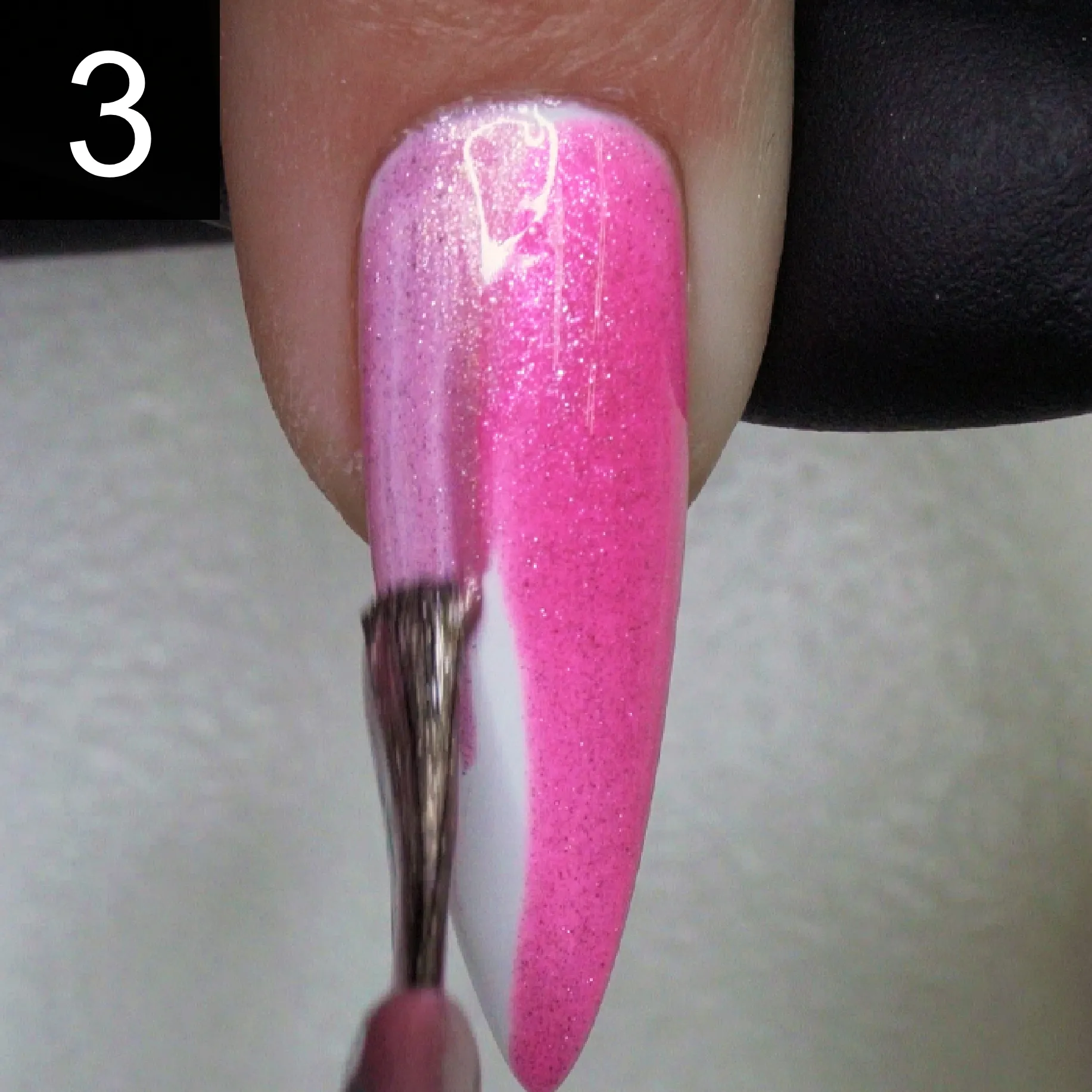 Apply Cat Eye Irresistible Force to the other half of the nail and cure for 30 seconds. Apply second coat of each color but DO NOT CURE.